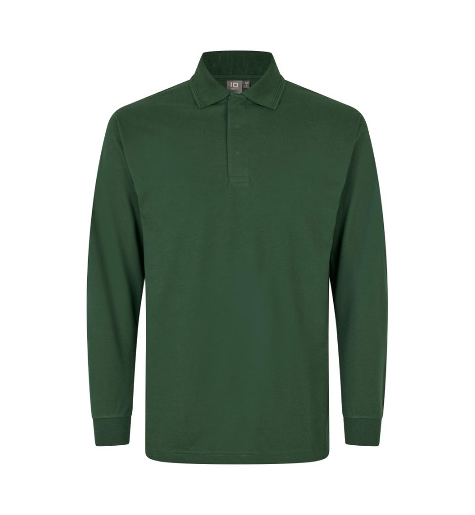 Slitstark piké tröja med långa ärmar och tryckknappar i sprundet. Nack- och axelband och halvmåne i nacken. Piké tröjan har genomgått en förkrympningsprocess vid mycket höga temperaturer, båda före och efter infärgningen, för extra stabilitet och lång livstid.