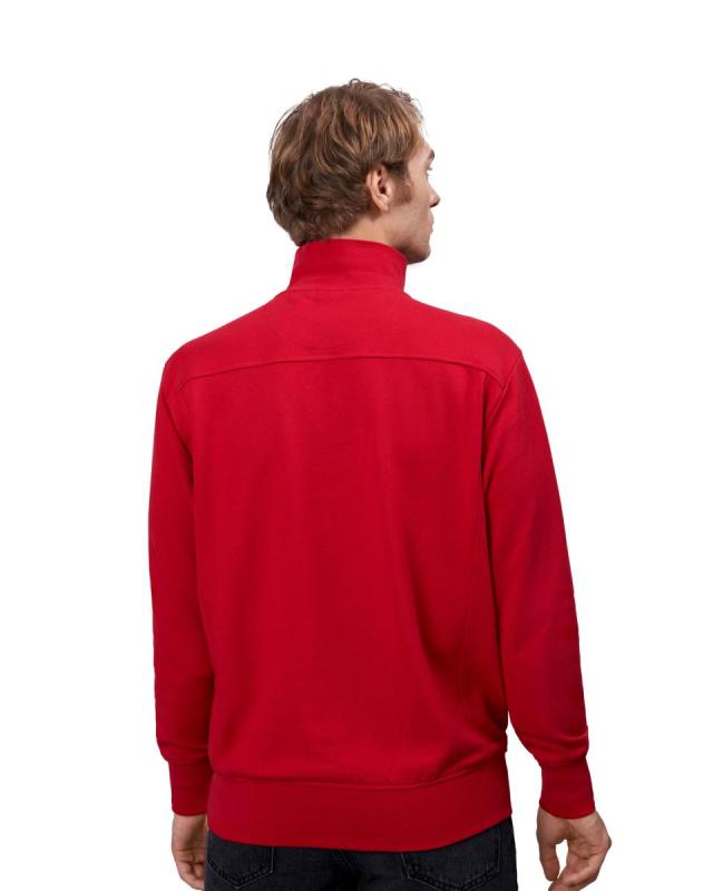 Klassisk sweatshirt i kraftig kvalitet med hög krage och blixtlås i halsen. Nackband och halvmåne i nacken och ribbstickning vid ärmar och nederkant. Oborstad insida.