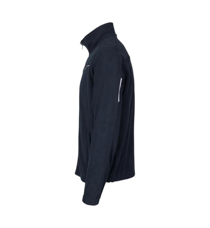 Mjuk, tätt stickad mikrofleececardigan med reflexband. Resår vid handled och nederkant och dold sidoficka med YKK-blixtlås. Fleececardiganen fungerar som ett extra isolerande lager när den kombineras med Zip-n-Mix skaljackan (0712).