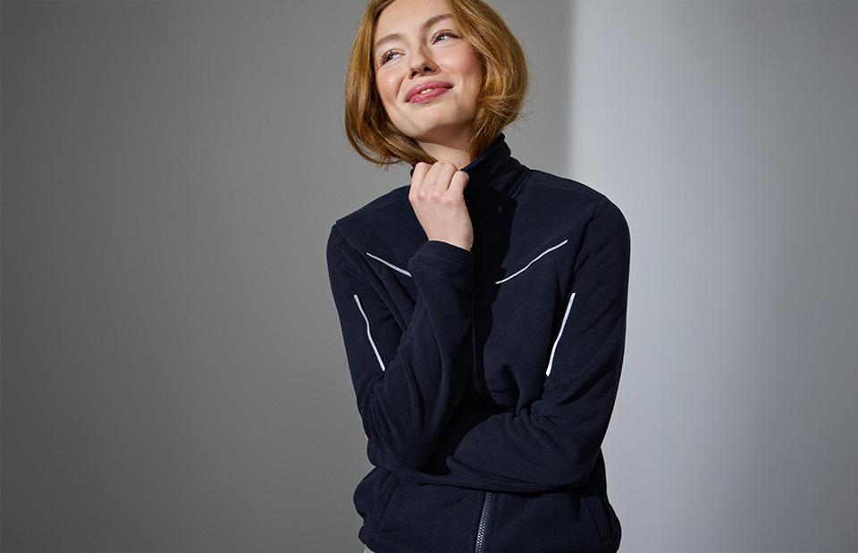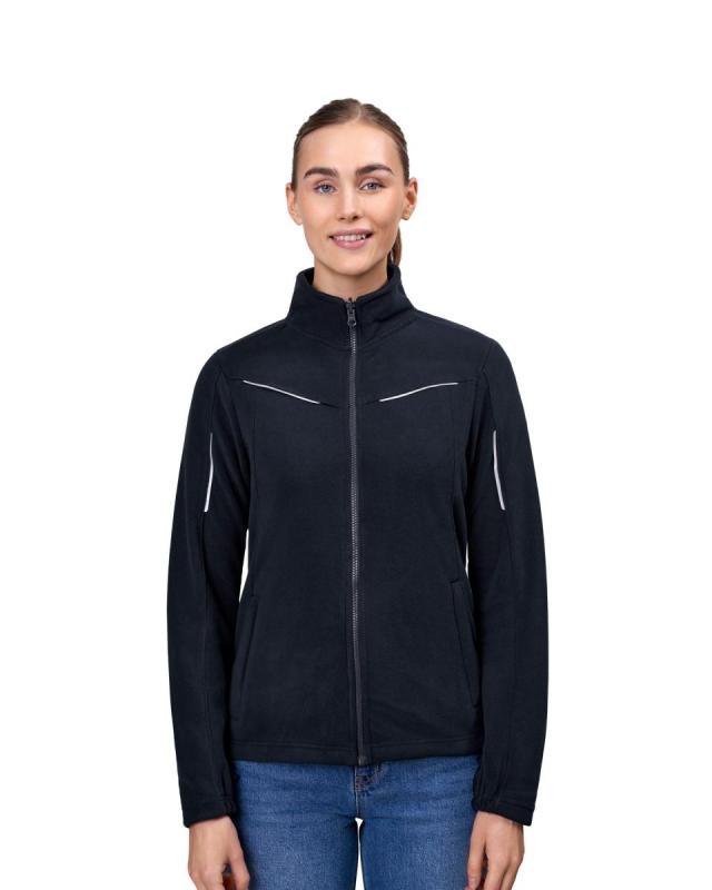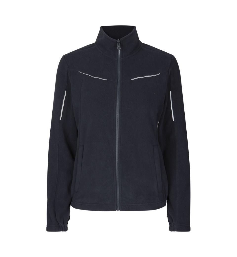 Mjuk, tätt stickad mikrofleececardigan med reflexband. Resår vid handled och nederkant och dold sidoficka med YKK-blixtlås. Fleececardiganen fungerar som ett extra isolerande lager när den kombineras med Zip-n-Mix skaljackan (0713).