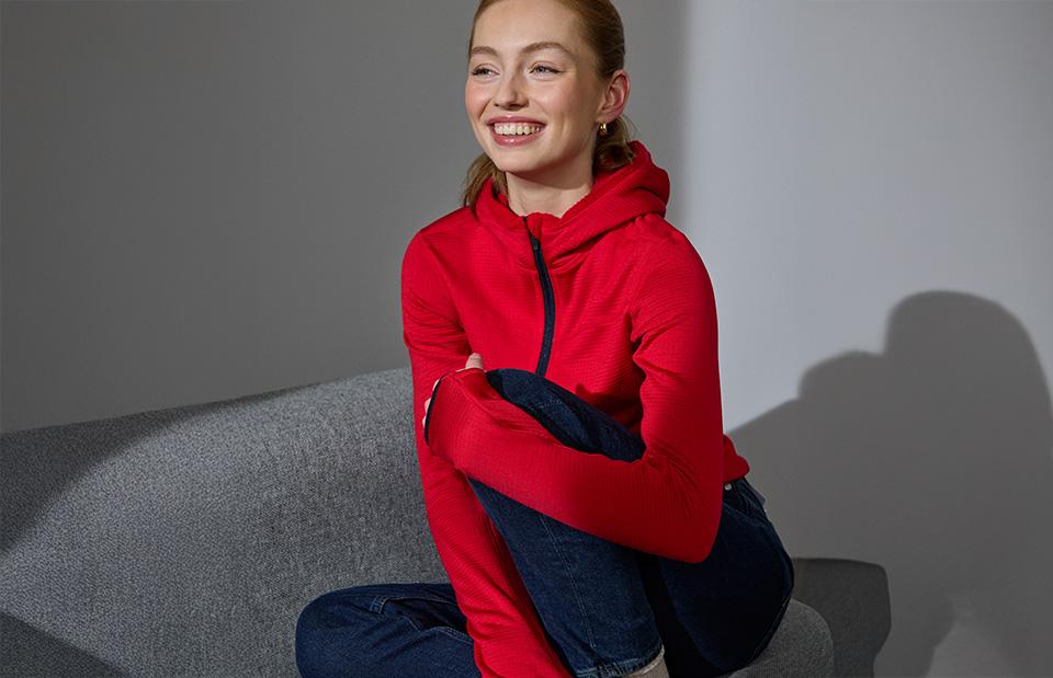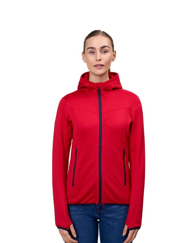 Sportig fleececardigan i bekvämt stretchmaterial. Mjuk inre fleece med våffelstruktur och YKK-dragkedjor i fram- och sidofickor samt hål för tumme i ärmarna. Cardiganen kan också användas som ett isolerande lager under jackan. Tättsittande passform.