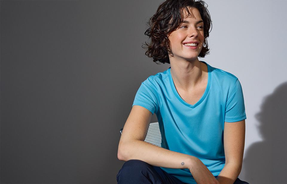 Funktionell T-shirt med v-ringning. Svett-transporterande, andningsbar och snabbtorkande. Hög funktionalitet till ett bra pris. Lätt figursydd.