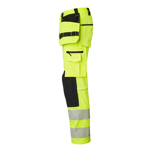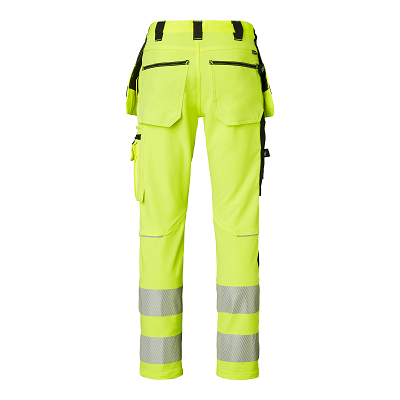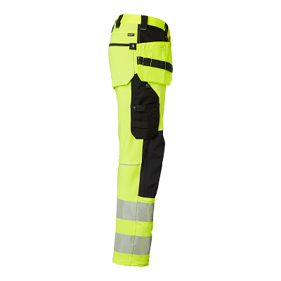 Hantverksbyxa i modern passform i 4-vägs stretch. Byxan har förböjda ben och knäfickor av Stretch Cordura®. Knäskydden kan placeras i två nivåer. Två framfickor. Två förstärkta bakfickor med bälg. Löst hängande spikfickor förstärkta med Cordura®. Hängfickorna är utrustade med tre extra fack och verktygshällor. Id-korts ficka. Reglerbar hammarhank. Framflyttad tumstocksficka som är släppt nertill för bättre komfort. Tumstocksfickan är utrustad med två knivhållare, knivhälla och pennficka. Benficka med dragkedja, stor extraficka samt telefonficka. Reflexdetalj bak.