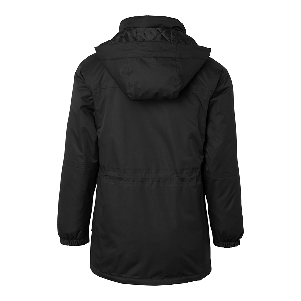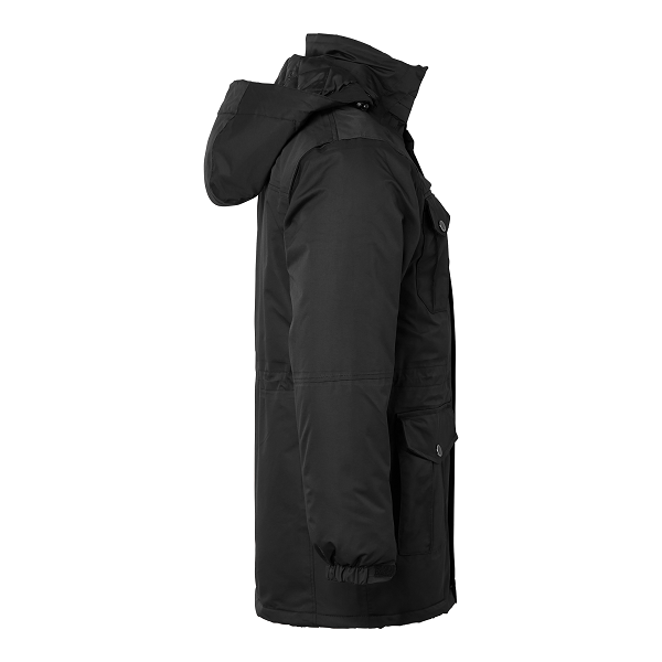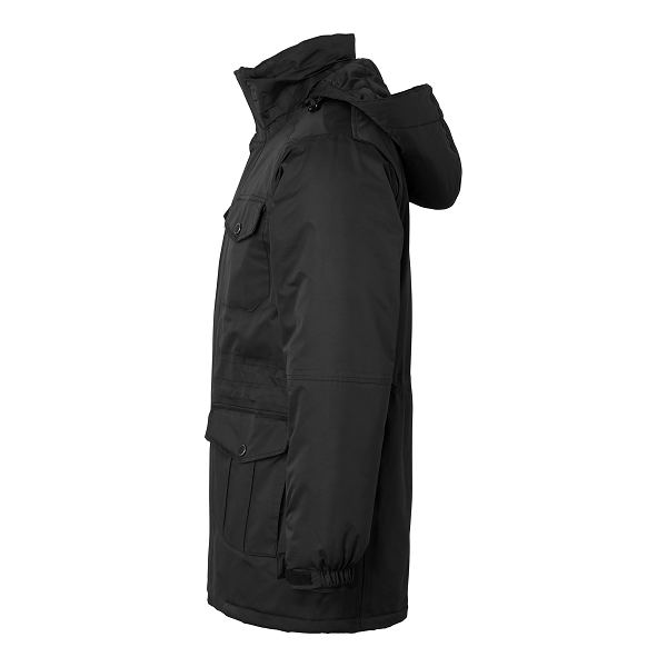 Vindtät och vattentät parkas med tejpade sömmar och god andningsförmåga. Fodrad med quilt. Två framfickor med lock samt två framfickor med dragkedja. Två bröstfickor, en med lock och en med dragkedja och telefonficka. Uttagbar id-kortsficka. Kartficka. Två innerfickor med dragkedja. Löstagbar fodrad huva. Ärmficka med dragkedja. Reglerbart ärmslut. Dragsko i midja. Reglerbar i nederkant. Mudd med tumgrepp.EN 342. EN 343.