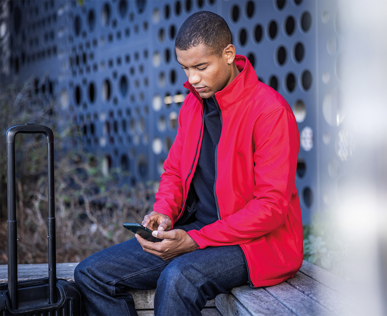 Softshelljacka som är vindtät och vattenavstötande. Den har två fickor och är justerbar i nederkant.