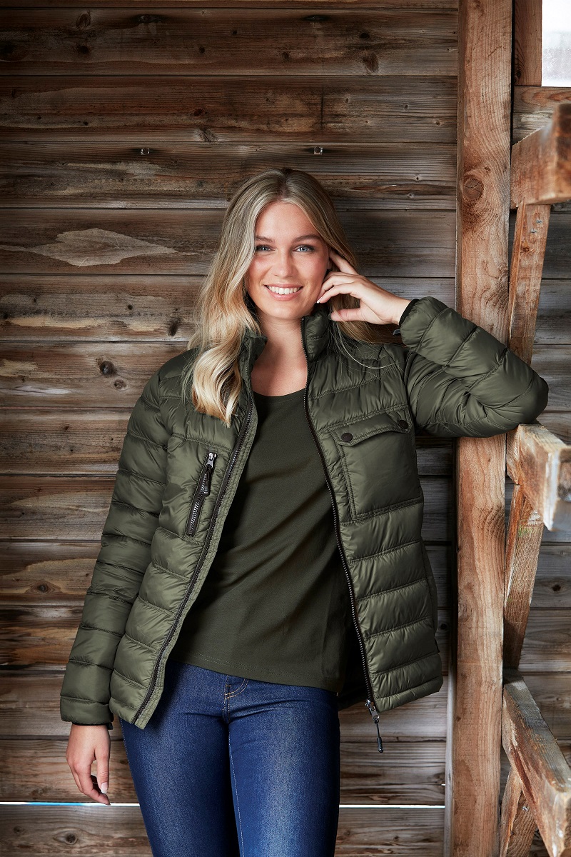 Uppdaterad lättviktsjacka i dampassform med tyg, vadd och även dragkedjor producerade av återvunnet material. Jackan har flera användbara fickor, exempelvis innerficka samt två bröstfickor varav en med dragkedja och en med ficklock. Elastiska band med heatprint i ärmslut. Jackan ingår i vårt The Mix Concept och kan användas ensam eller enkelt fästas som en mellanlagersjacka tillsammans med 635 Alma skaljacka eller 643 Alma parkas.