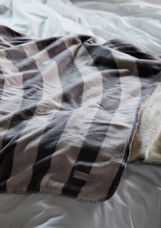 Sherpapläd i den ultimata kombinationen av tidlös elegans och underbar komfort. Med sin fluffiga fleece på ena sidan och mjuk polyester på den andra erbjuder pläden en oemotståndlig hög mysfaktor. Den generösa storleken på hela 130x180 cm gör pläden till en favorit i TV-soffan eller som en elegant inredningsdetalj på sängen eller i vardagsrummet.