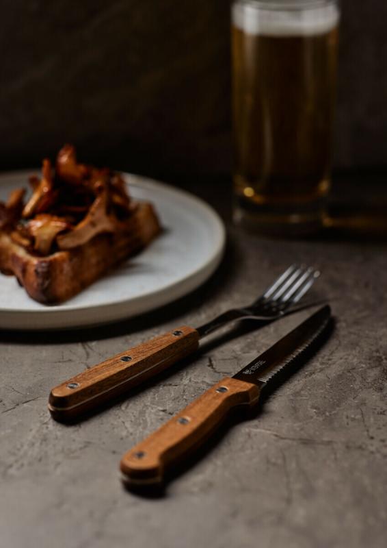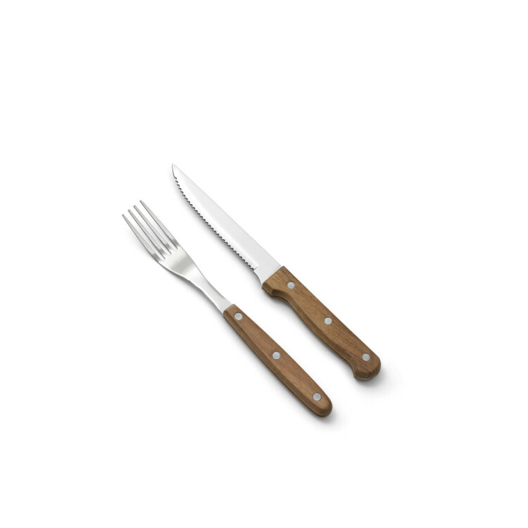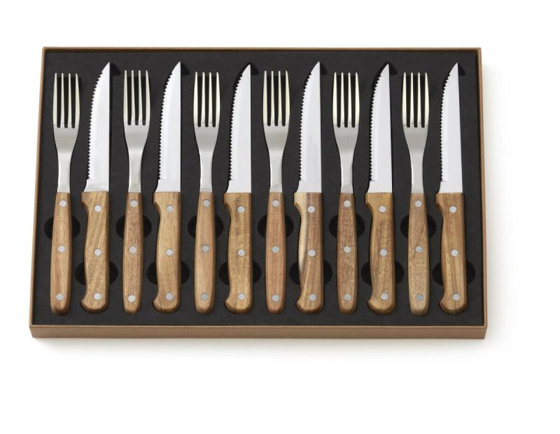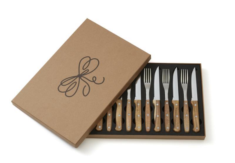 Set om 12 delar grillbestick i rostfritt stål och med klassiska handtag i FSC-certifierat acasiaträ. Den tandade kniven gör det enkelt att skära din mat till mindre bitar. Elegant paketerat i presentförpackning.