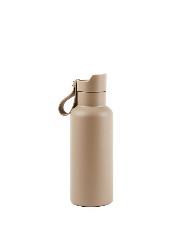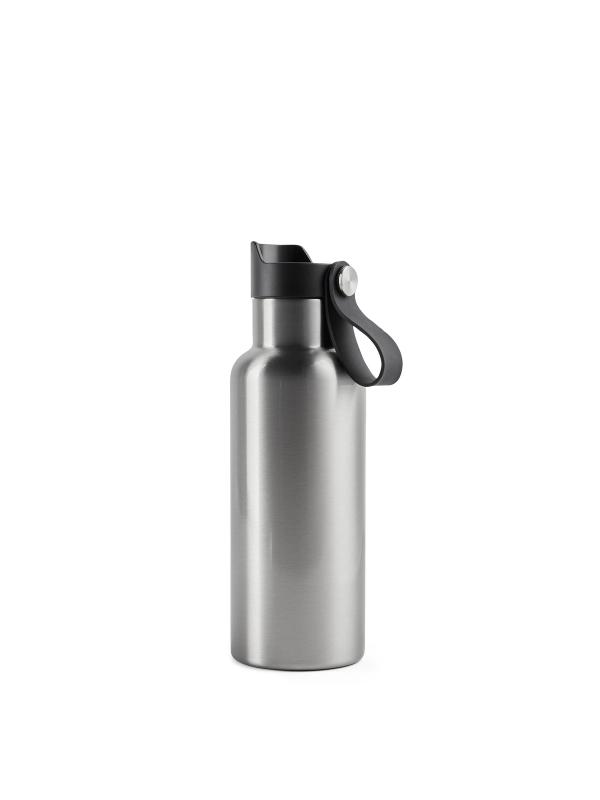 Praktisk och stilren flaska med en tålig dubbelvägg. Vakuumförseglad för att hålla drycker varma eller kalla. Denna flaska håller din dryck varm upp till 6 timmar och kall upp till 15 timmar. Njut av din kalla favoritdryck när du är på stående fot eller ta med dig en värmande kopp te eller kaffe på morgonpendlingen till jobbet. Praktiskt push-knapp upptill för att slippa skruva upp locket.