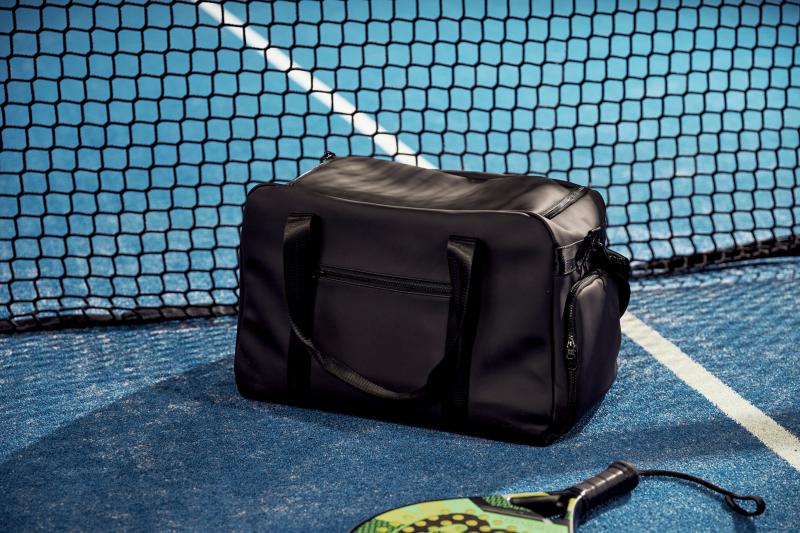 Stilren och minimalistisk gymväska i ett lätt, vattenavvisande nubuck-PU tyg med elegant matt utsida samt insida i lätt syntetväv. Huvudfacket stängs med en dragkedja. Bra organisatoriska möjligheter på insidan med flera fack. Skofack på kortsidan så att skorna inte smutsar ner väskans innehåll. Robusta handtag så att du kan fylla väskan ordentligt. Reglerbar axelrem.