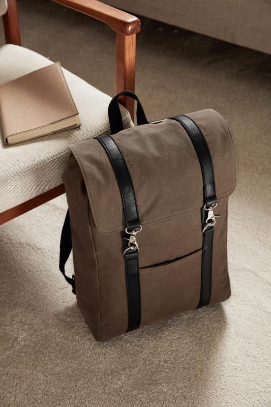 Ryggsäck i bomullscanvas med diskreta detaljer i veganläder. Fodrad insida ger väskan ett exklusivt intryck samtidigt som den är skonsam mot sitt innehåll. Insidan har ett vadderat fack för din laptop. En stilren och klassisk väskserie som tilltalar många.