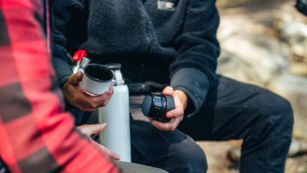 Vildmarks klassiska ståltermos med dubbla muggar och isolerad skruvkork.