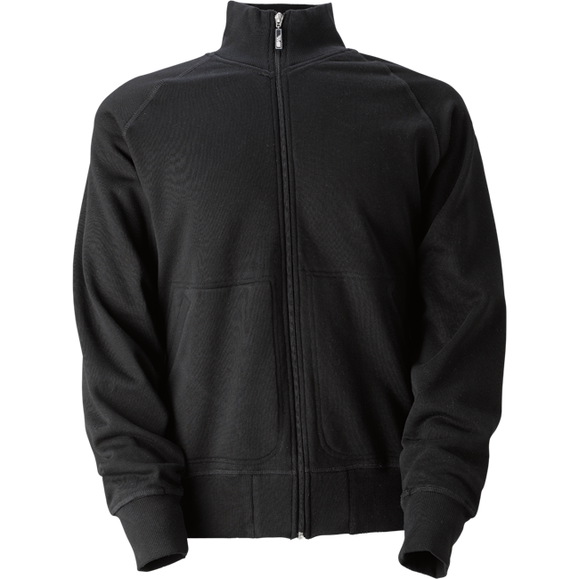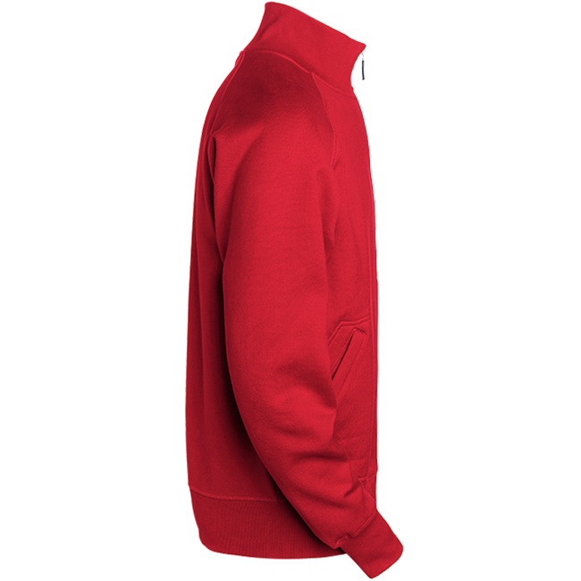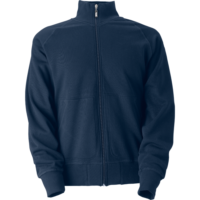 Snygg cardigan/college med dekorativa flatlocksömmar och fina detaljer i nedre mudd och frontfickor. Den har hel dragkedja, raglanärm samt krage och mudd i 2x2 ribb. Borstad insida.