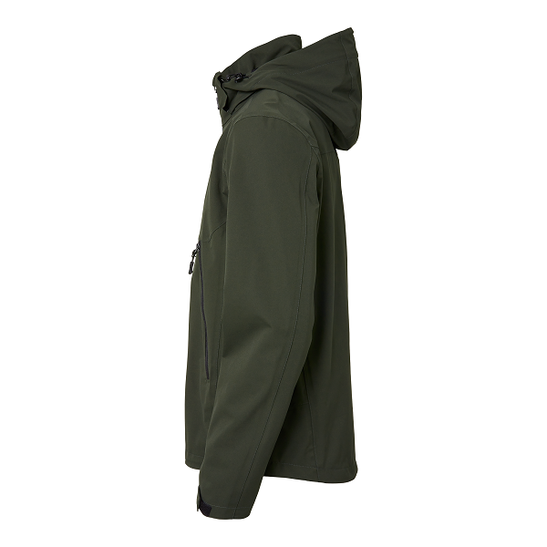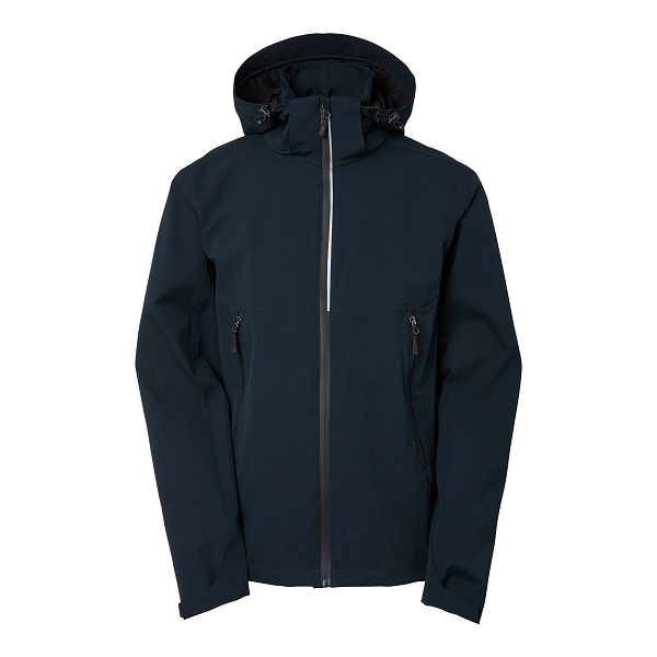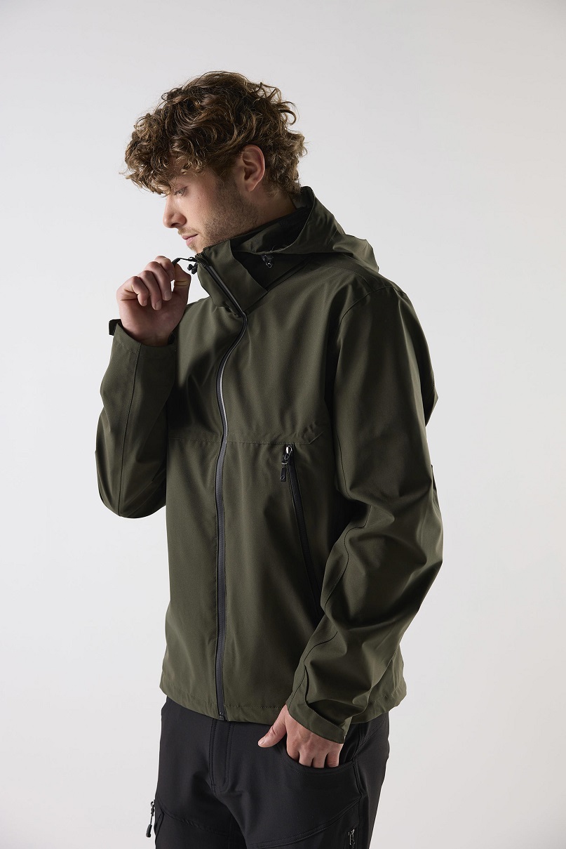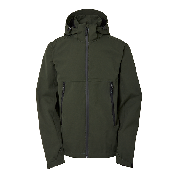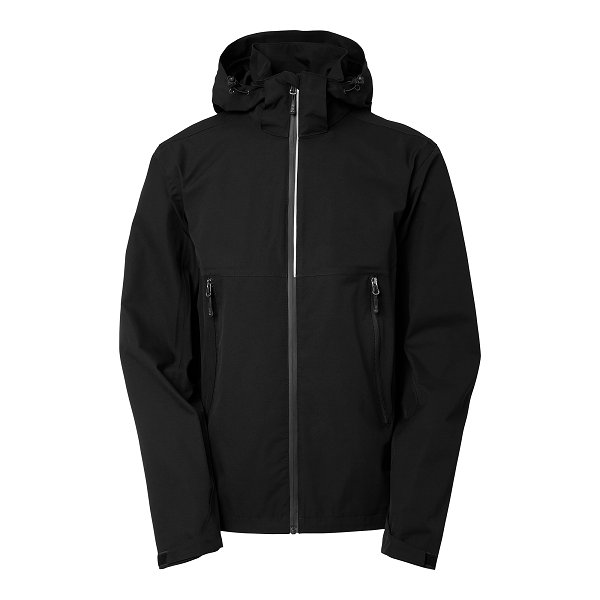 Vind- och vattenavvisande skaljacka med tejpade sömmar. Vattentät dragkedja framtill med praktisk reflexdetalj. Jackan är mjuk och följsam med mekanisk stretch i tyget, vilket gör plagget väldigt behagligt att bära. Fodret är en kombination av polyester mesh samt slät polyester. Avtagbar huva med dragkedja och tryckknappar. Elastiska dragskor med stoppers i såväl huva som i jackans nederkant. Flärp med kardborre för justering av ärmslut. Två rymliga sidfickor med dragkedja samt en innerficka med dragkedja.