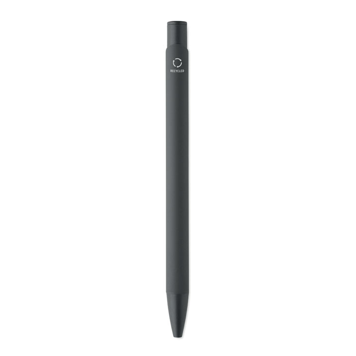 Tryckpenna av återvunnen aluminium med järnklips och färgad gummiklädd kropp.