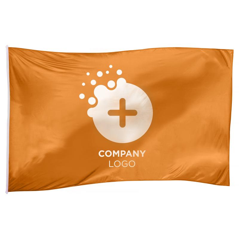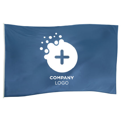 Vi digitaltrycker flaggorna på en stickad polyester 110 g och de görs alltid med genomtryck.