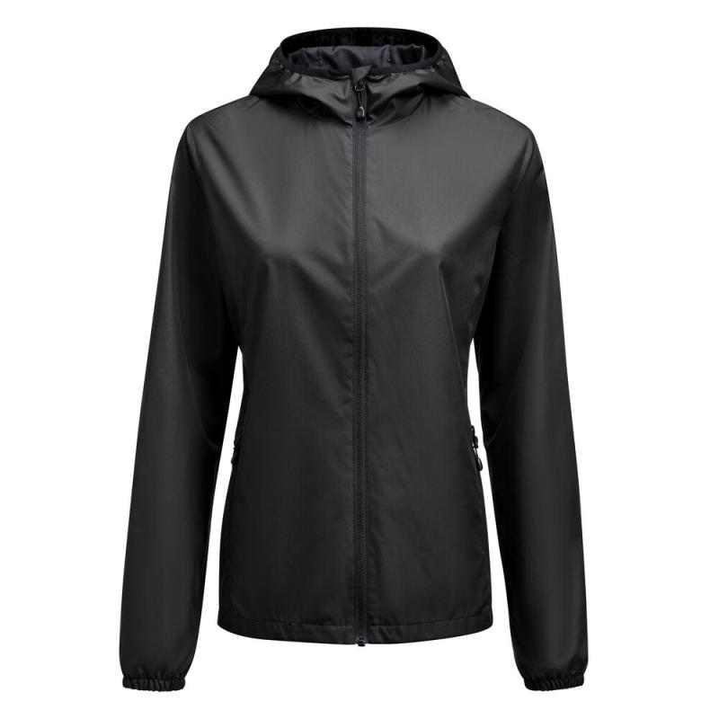 Skön Windbreaker i matt finish med ton-i-ton-dragkedja, fast huva och elastiska ärmslut och midja. Meshfoder. Vattenavvisande C0 Bionic Finish Eco.