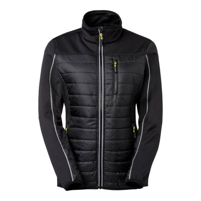 Powerstretchjacka med dampassform i följsam kvalité. Framsida i nylontyg med lätt padding. Dragkedjorna har tejp och zip-pullers i kontrastfärg. Elastiska band med SW-heatprint i nederkant på ärmavslut och krage. Svart modell har reflexband i ärmens flatlocksöm och reflex på frontdragkedjans tejp.