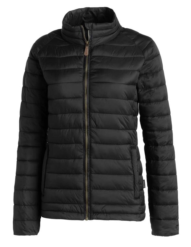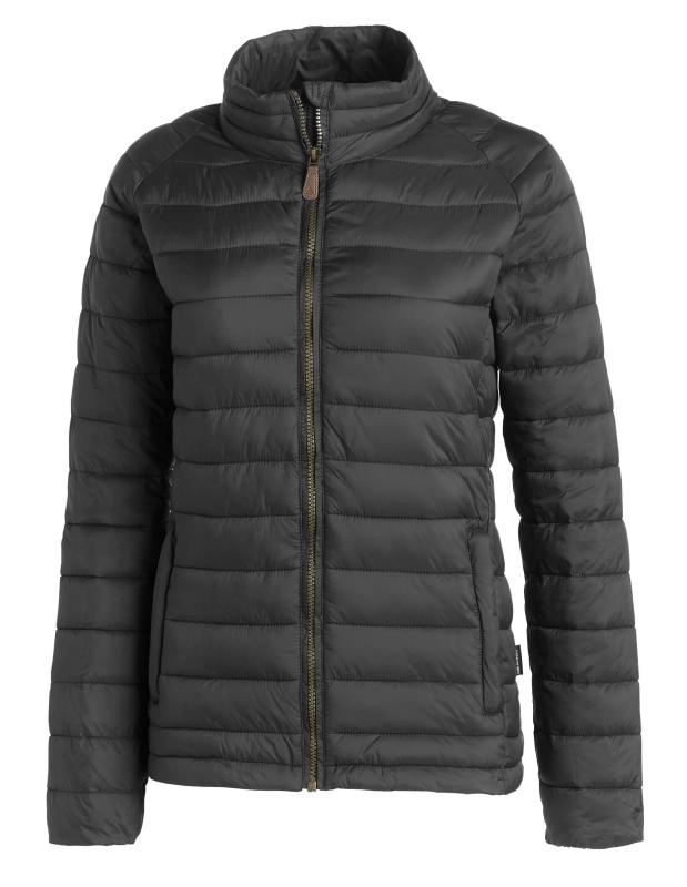Modern quiltad lättviktsjacka i dammodell. Matt nylon i yttertyget med syntetisk vaddering. Två sidfickor och elastiskt ärmslut.