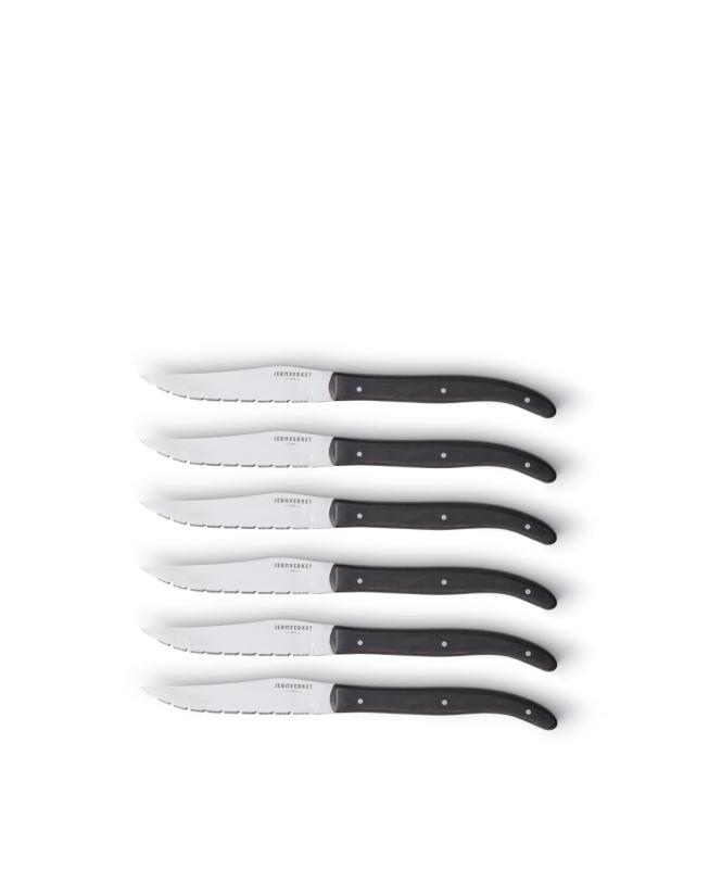 Ett elegant knivset från Jernverket om 6 stekknivar med snyggt skaft i brunt trä. Knivarna är framtagna med skarpa blad som underlättar den härliga måltiden.