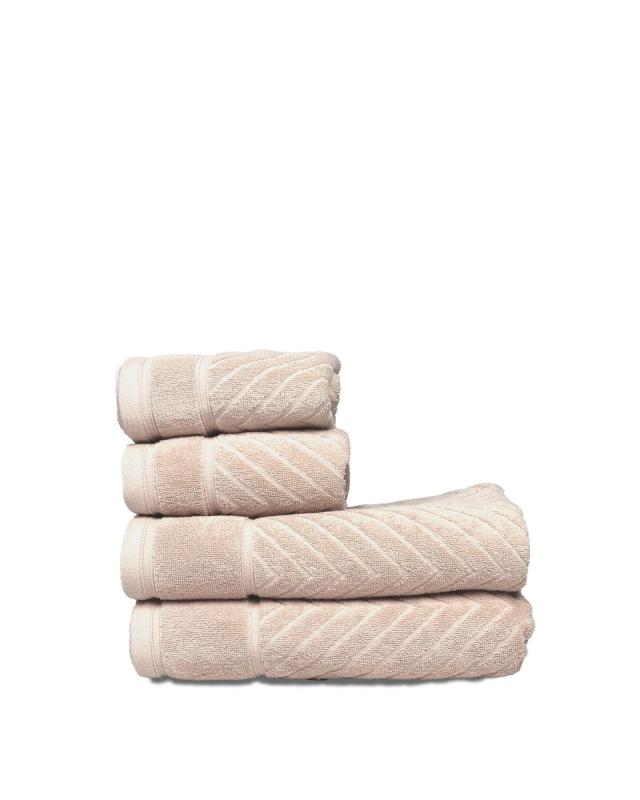 Setet består av 2 stora (70x135 cm) och 2 små (50x70 cm) handdukar.