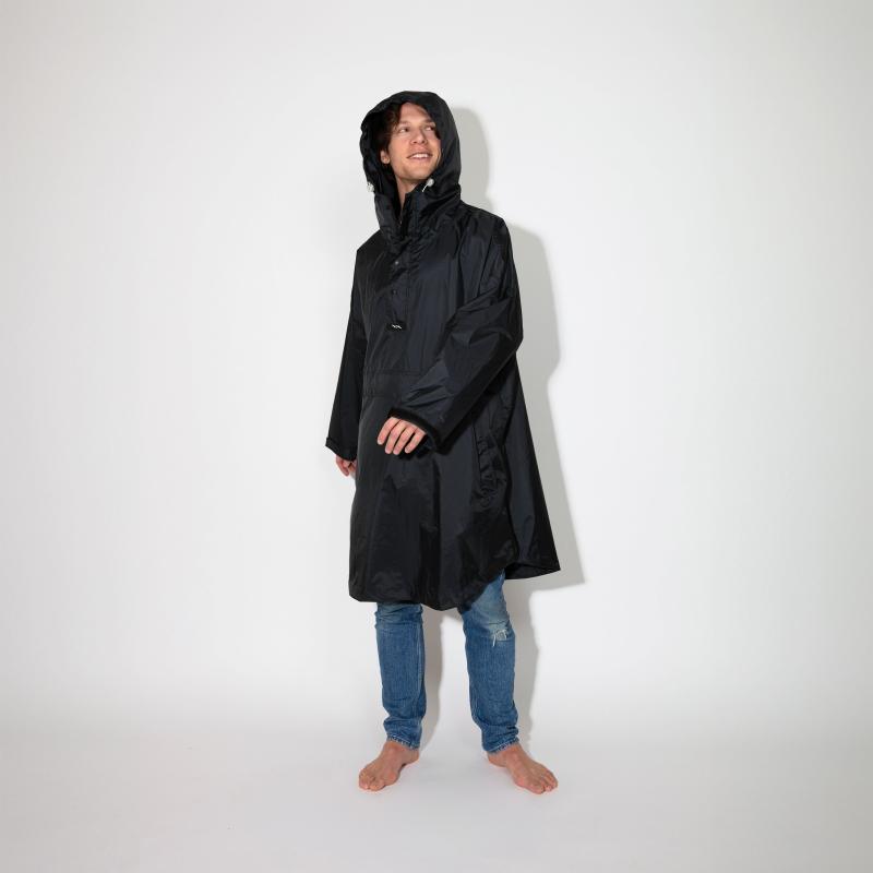 Vår regnkappa kan bli både liten och stor då den lätt packas till en liten påse genom fickan på magen samtidigt som den passar alla storlekar med sin generösa passform. Dessutom har den smarta funktioner som skydd över ansiktet och dragsko i luvan för att skydda dig även i de mest regniga väder. Eftersom den kan packar ihop till en liten påse är det enkelt att förvara den i väskan och ta fram när vädret växlar.