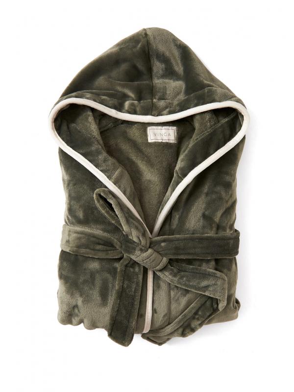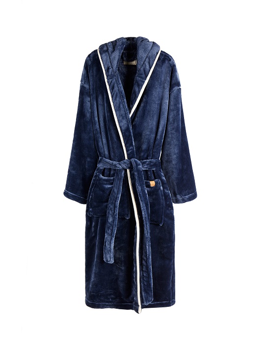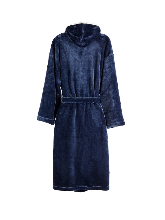 Mysig och mjuk morgonrock i luxury plush med stor huva och dekorativ piping. Två fickor framtill och skärp i midjan. Morgonrocken är tillverkad av 68 % verifierat återvunna material. Vi gillar inte att transportera luft därför har vi valt att vakuumpacka denna morgonrock för att minska klimatavtrycket. OEKO-TEX Standard 100 innebär att morgonrockens material lever upp till en rad kriterier gällande produktsäkerhet. Tillverkad av GRS (Global Recycled Standard). GRS-certifiering säkerställer att hela leveranskedjan av de återvunna materialen är certifierade.