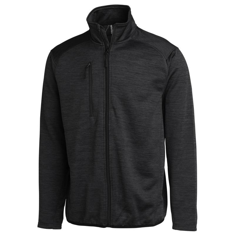 Powerfleece cardigan i melerad singel jersey bondad med fleece. Bröstficka på höger sida.