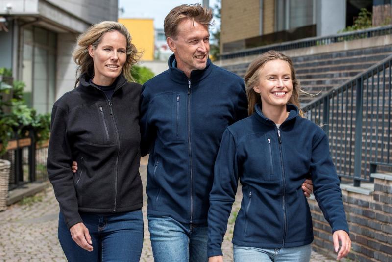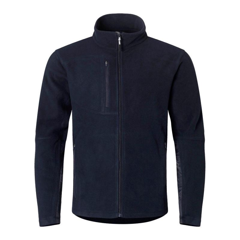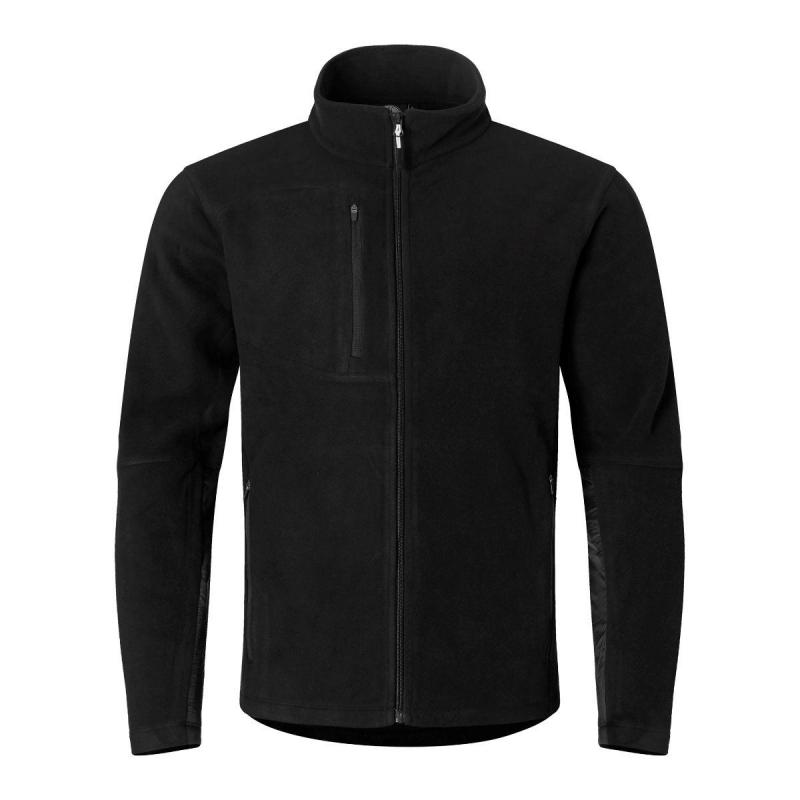 Fleecejacka av återvunnet material. Två sidfickor och nylonförstärkningar på underarmarna.