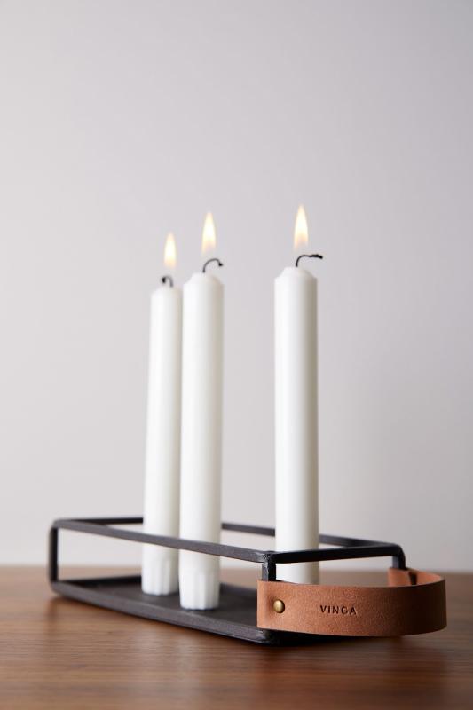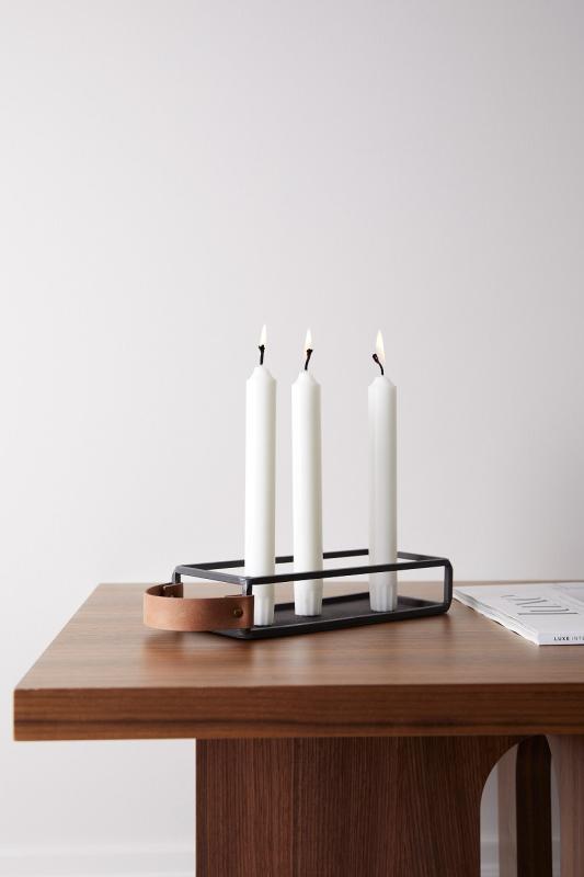 Ljusbricka i järn med detaljer i veganskt läder. Den här vackra ljusstaken har en minimalistisk design som blir ett underbart inslag i ditt hem och smälter in i vilken inredning som helst. Lämplig för alla olika typer av stearinljus - låt fantasin flöda med alla typer av former, färger och dofter och skapa en stämningsfull detalj i ditt hem.