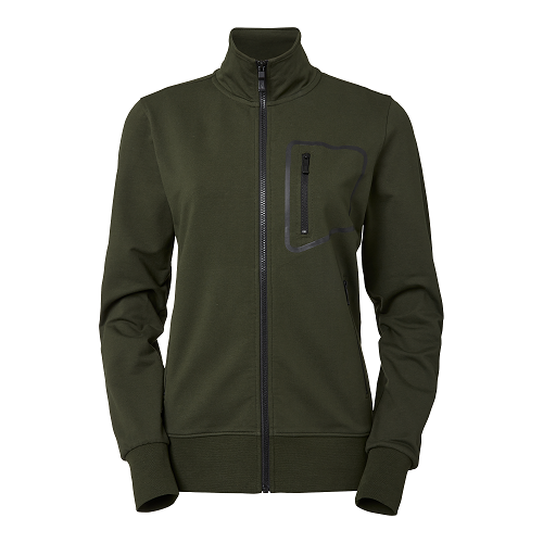 Collegejacka med dampassform i tunn och skön stretchkvalitet med hel dragkedja och ståkrage. Sidfickor samt bröstficka med dragkedja. Präglade logo-kläppar.
