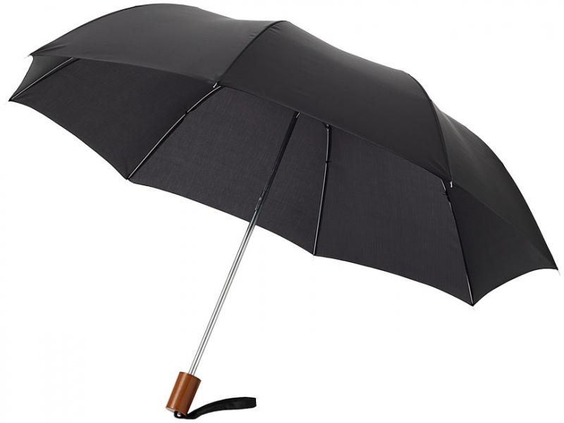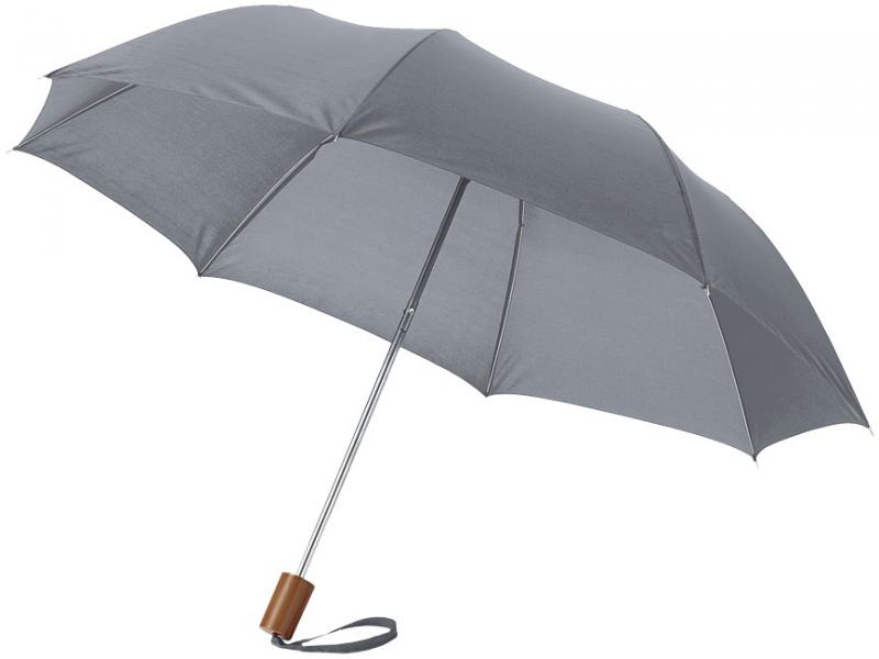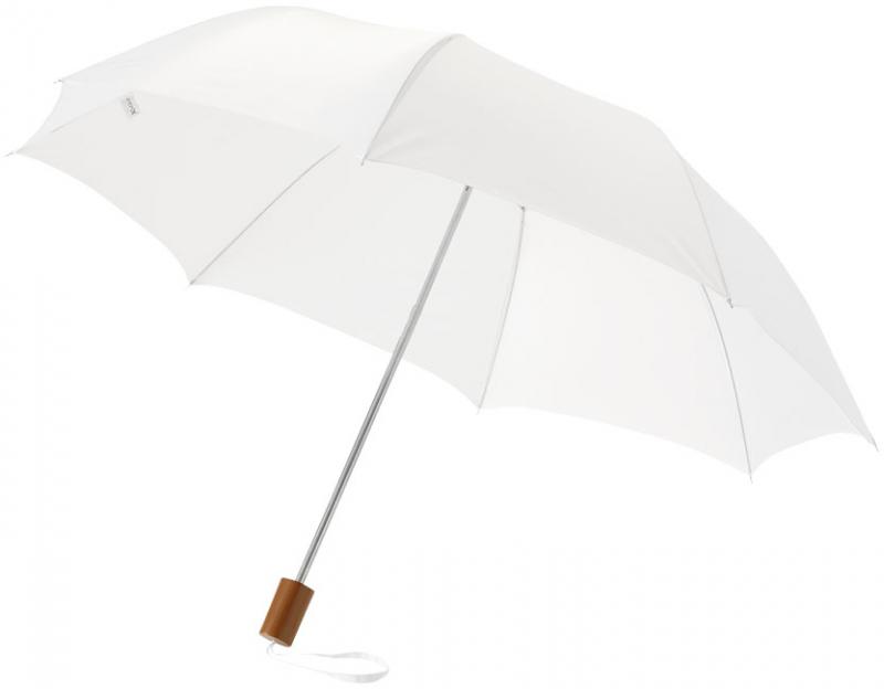 20" Oho 2-sektions paraply med metallskaft, metallribbor och plasthandtag med handledsrem. Inklusive fodral.