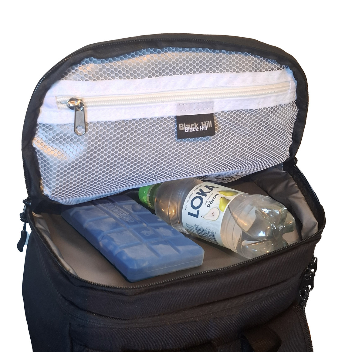 Ottawa är en ryggsäck från Black Hill. Ryggsäcken är utrustad med flexibla hyllplan för att göra din packning smartare. Översta dragkedjefacket är ett kylfack och facket under ger dig åtkomst till huvudfacket i ryggsäcken. Du kan även öppna ryggsäcken från sidan. Där finns 2 hyllplan så du kan packa i 3 våningar. Sidolocket har även 2 nätfickor med dragkedja för dina mindre prylar.
