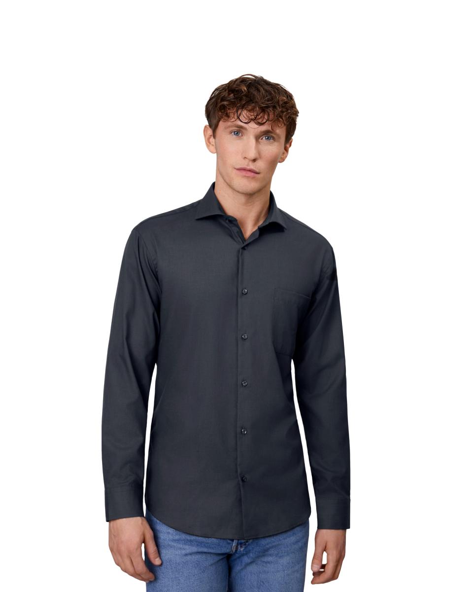 Elegant business-skjorta, tillverkad av extra mjukt Oxford-tyg i förbättrad, strykfri kvalitet. Kontrastpasspoaler invändigt i nacken på den ljusblå skjortan.