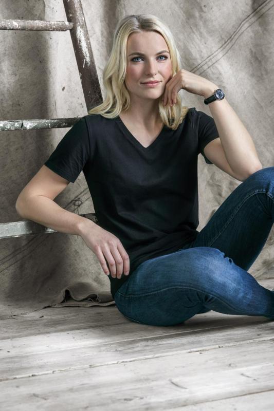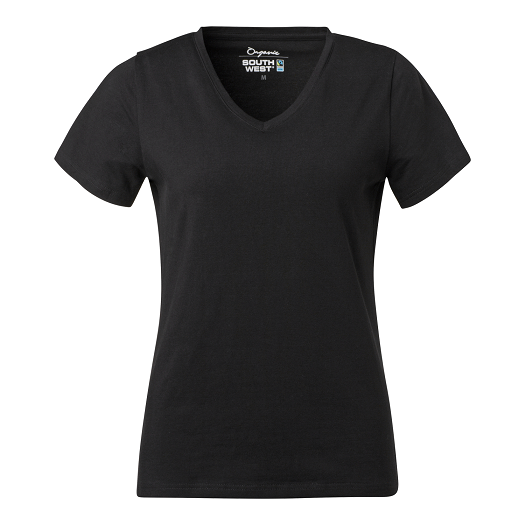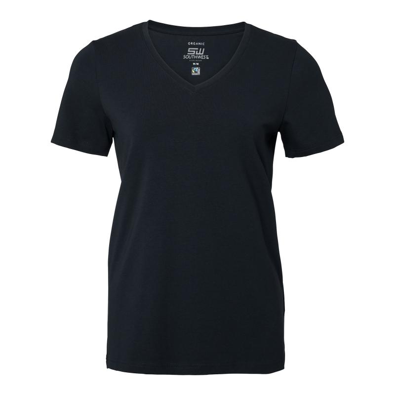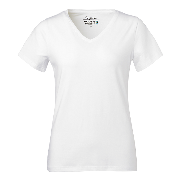 T-shirt gjord av Fairtrade-certifierad bomull med stretch för skön passform. Snygg v-ringad hals och fin dampassform.