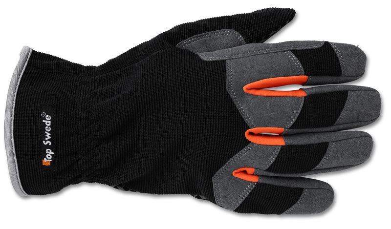 Smidig monteringshandske som andas. Innerhand av syntetläder som är förstärkt med ett mönster av silikon för bästa grepp. Ovanhand av följsam spandex. Fingertopparna förstärkta med konstläder . Resår runt handleden.