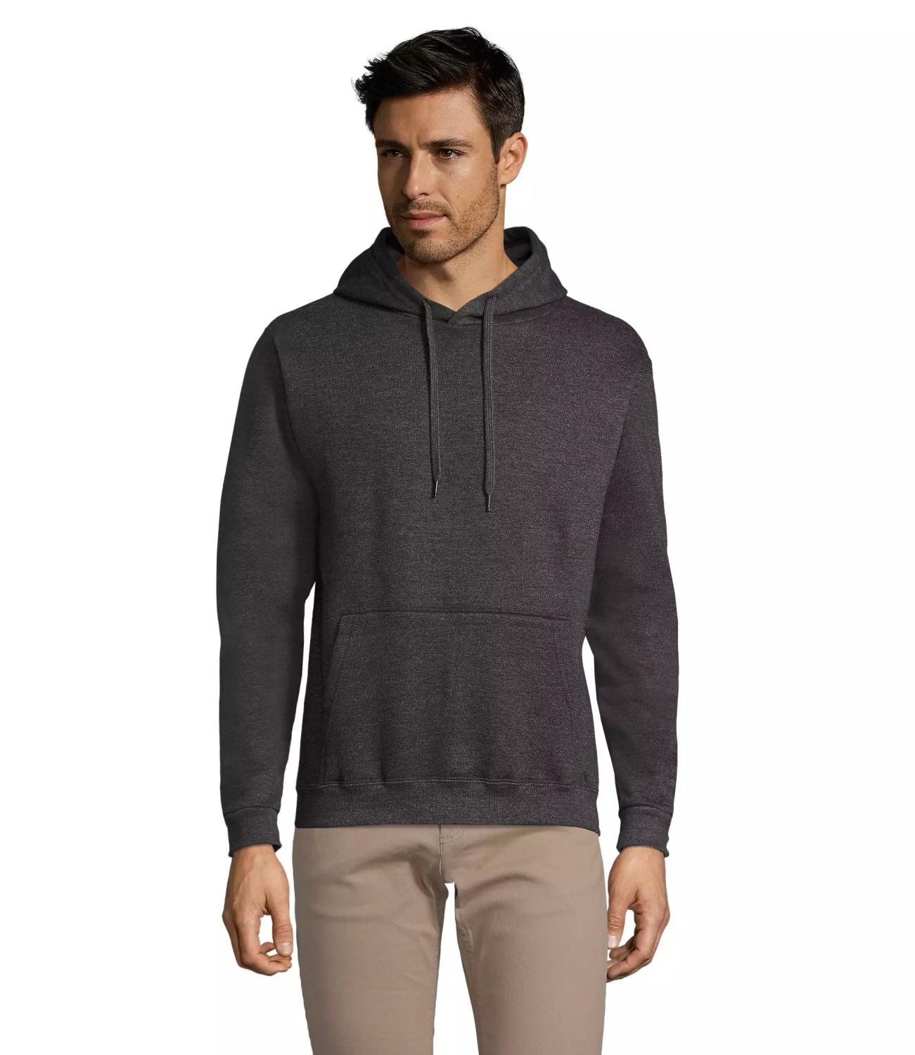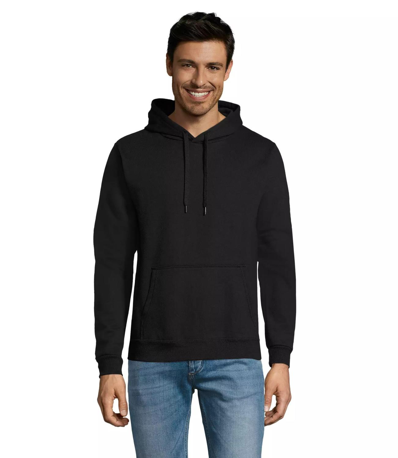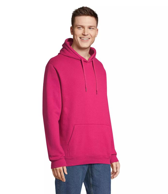 Prisvärd och populär hoodie från Sol´s. Den har ofodrad huva med matchande platt dragsnöre och ribbstickad nederkant och ärmslut i elastan.