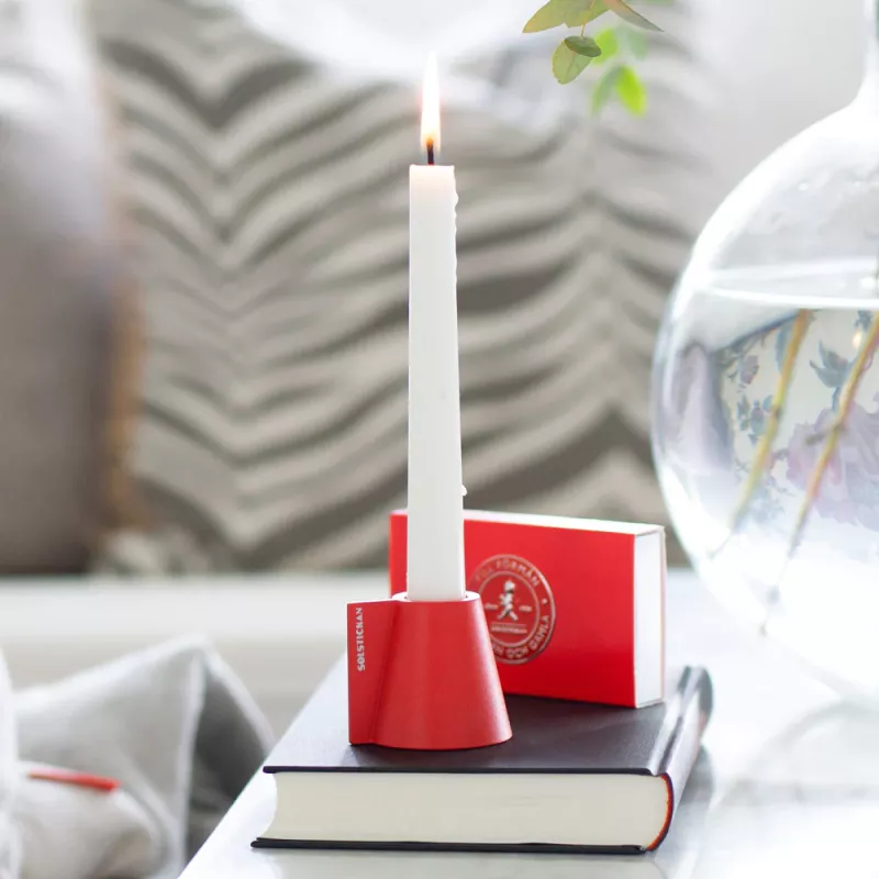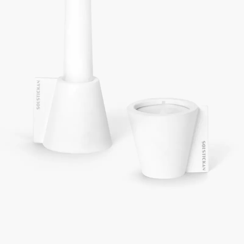 Smart vändbar ljushållare som passar för både kronljus och värmeljus. Tillverkad i rejält pulverlackerat stål.