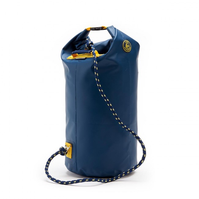 Vattentät sjösäck i marinblå med gula detaljer. Tillverkad i slitstarkt 500D PVC tarpaulin gör den anpassad för att klara av tuffa förhållanden både på land, till sjöss, och på match. Materialet står emot vatten otroligt bra!