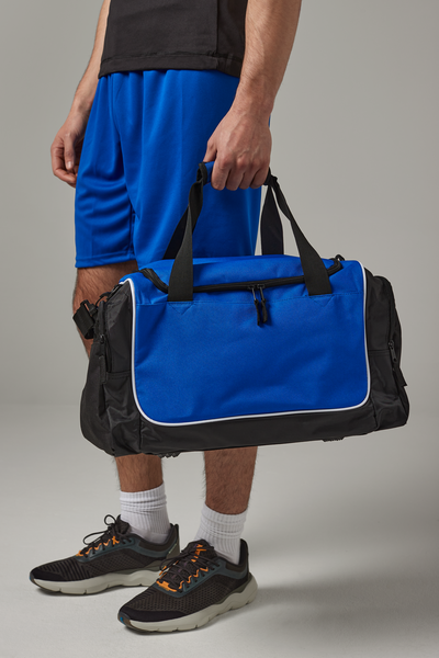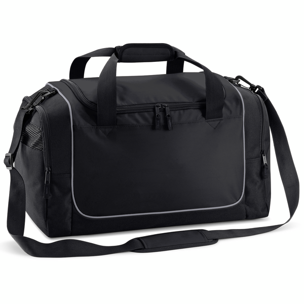 Sportväska från Quadra med fack på båda kortsidorna varav en med nätficka. Reglerbart axelband. Förstärkt botten på insidan. Kompakt format.
