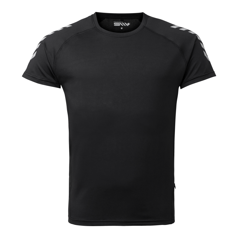 Rundhalsad tränings T-shirt med meshpartier i sidor och övre del av rygg för ventilation. Reflextryck på ärmar för att öka synligheten i mörker. Ficka i vänster nederkant.