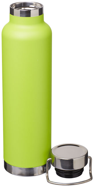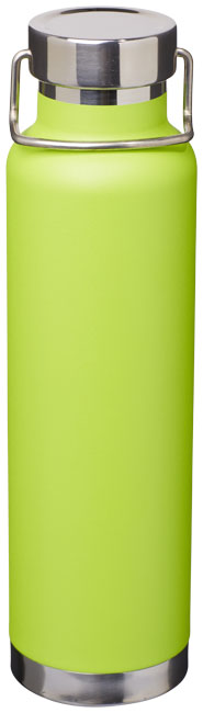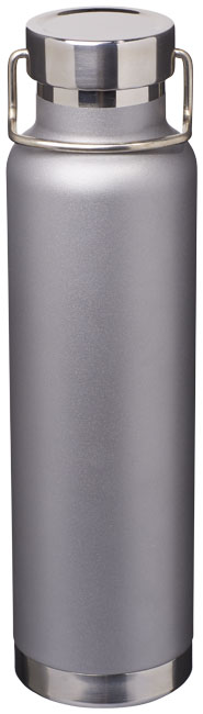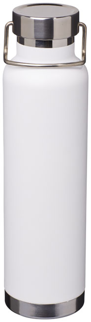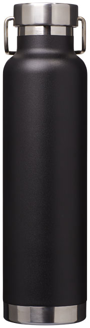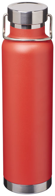 Thor kopparvakuumisolerad flaska. Slitstark dubbelväggskonstruktion med kopparisolering, vilket gör att drycken kan hålla sig varm i minst 12 timmar och kall i 48 timmar. Konstruktionen förhindrar också kondens på utsidan av flaskan. Trendig, hållbar pulverlackering. Rostfritt spillsäkert lock med slitstarkt handtag i rostfritt stål. Bred öppning för att fylla eller hälla enkelt. Perfekt för isbitar.