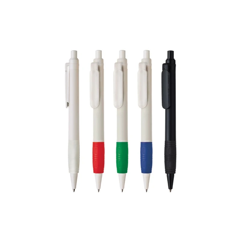 Vegetal Pen Grip är en miljöanpassad kulspetspenna med pennkropp tillverkad i certifierad PLA-plast, Ingeo®. Det betyder att pennan är biologiskt nedbrytbar och komposterbar till 85%, gummigrepp, refill och fjäder undantaget. Pennan finns i svart och vitt utförande alternativt vit med färgat gummigrepp och kan tryckas på både pennkropp och klips. Klipset har även miljömärkning. Det mjuka greppet ger en riktigt behaglig skrivkänsla.