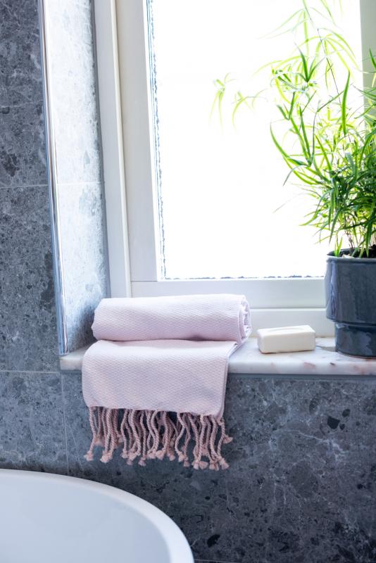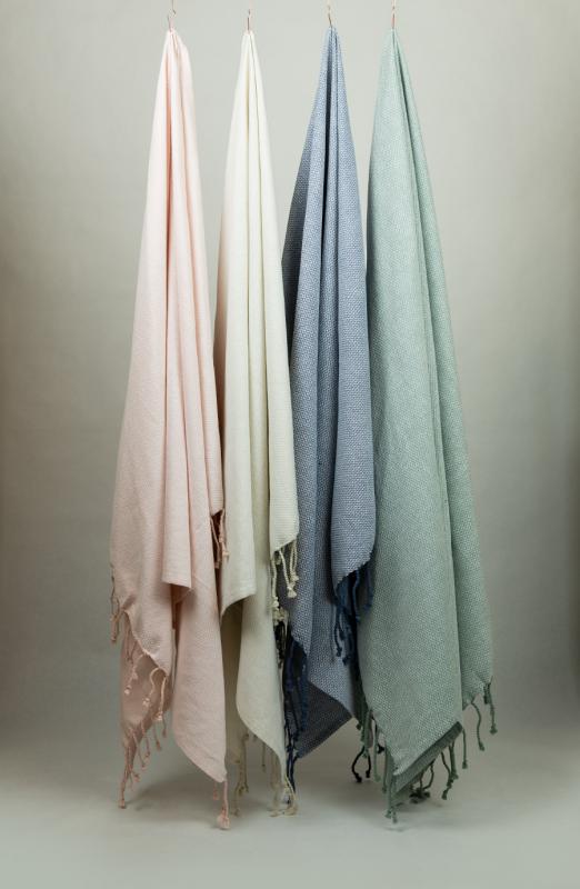 Strandhandduk från Ylleverket. Mjuk och härlig hamamhandduk i snyggt gåsögonmönster. Snygg och praktisk handduk som passar lika bra i badrummet som på resan. Den snabbtorkande handduken tar lite plats i resväskan Den perfekta ” att ta med handduken”.