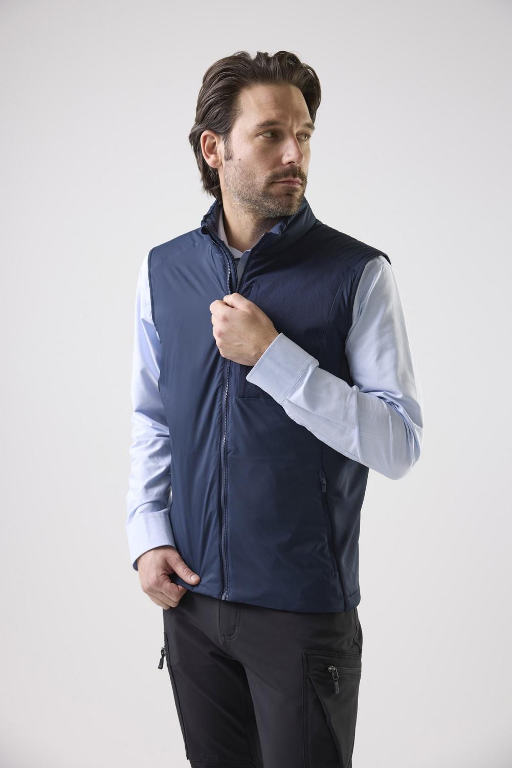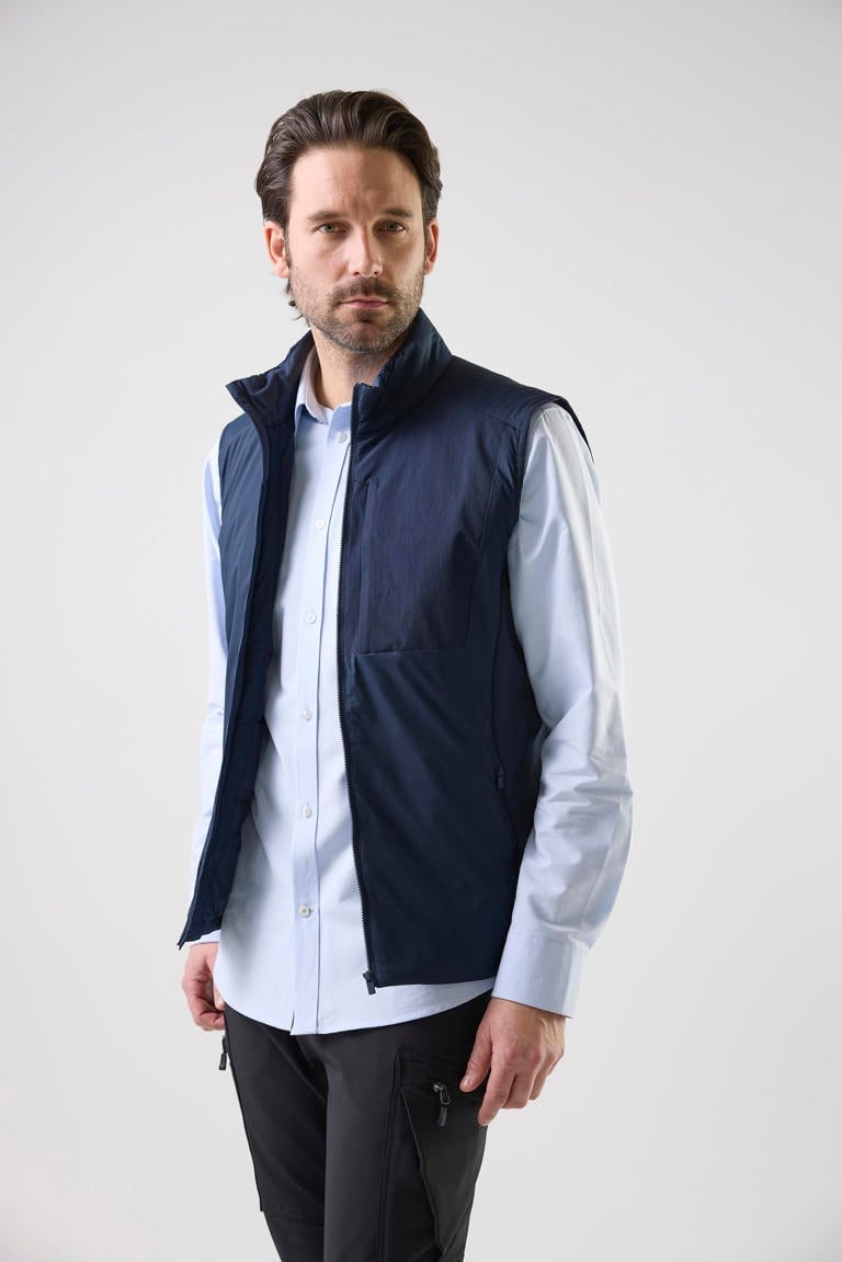 Zion Midlayer Vest är en lätt vadderad unisexväst med stilren design och hög komfort. Stretchpaneler i sidor och rygg ger rörelsefrihet. Utrustad med bröstficka, innerficka och sidfickor med dragkedja samt justerbar nederkant. Perfekt över skjorta för en dressad look.